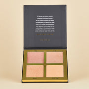 Paleta de iluminadores con 4 tonos radiantes: MIA, L.A, BALI y 6:00 PM, inspirados en los destellos cálidos de la “golden hour”. Diseñada para aportar un brillo multidimensional que eleva cualquier look.